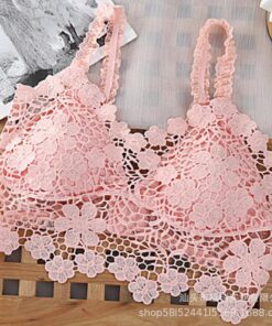 Bralette Crop Top Halter en encaje, con copas extraíbles firmes, sin aros metálicos y colores sólidos.